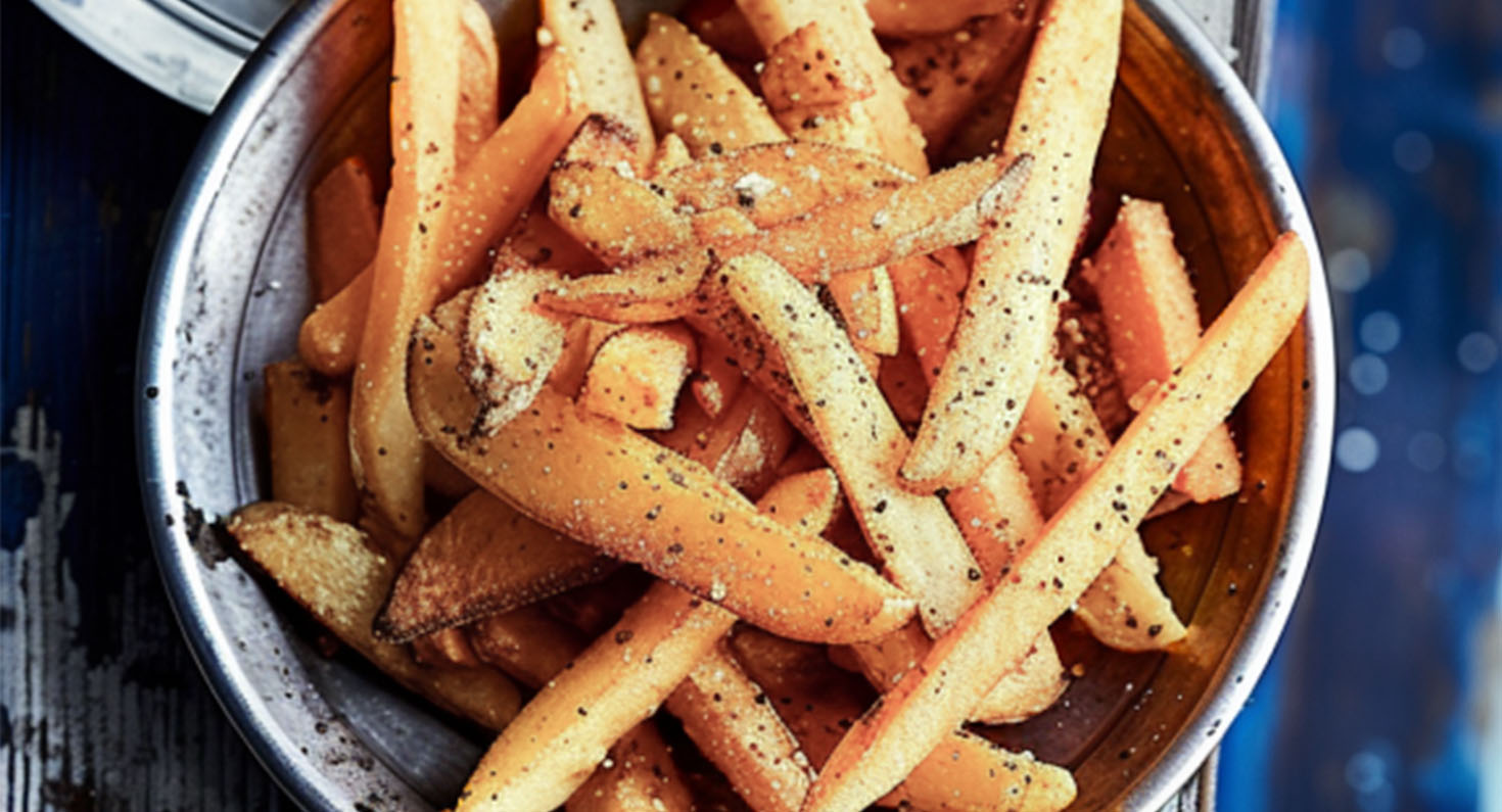 Lägg pommes fritesen i skålen med omrörningspaddeln. Starta tillagningen. Program AIR FRY i 25